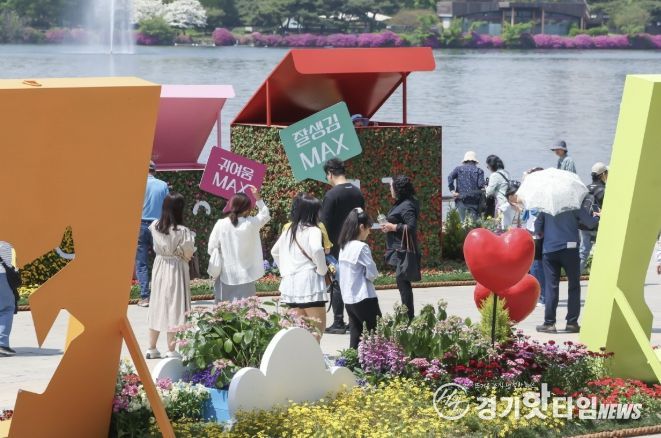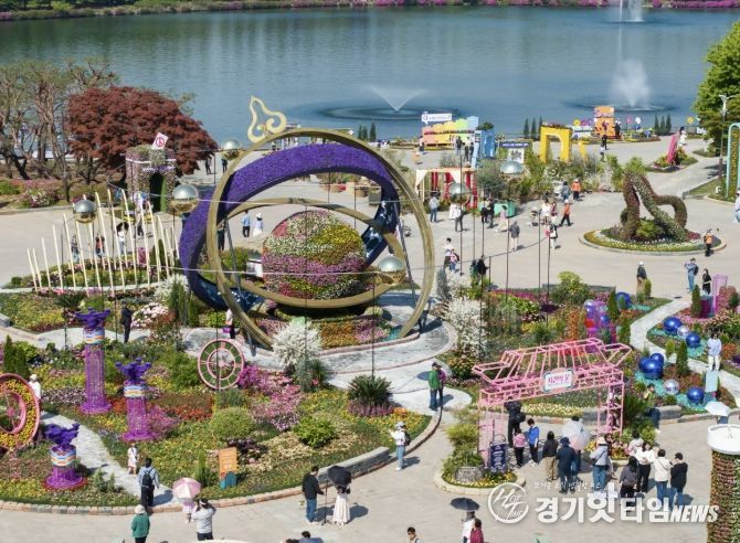 [경기핫타임뉴스=김형철 기자] 고양특례시 대표 봄 축제인 고양국제꽃박람회가 지난 24일 개막했다. 일산호수공원 일대 25만㎡에는 1,000여 품종, 1억 송이 꽃이 만개해 도심을 하나의 정원으로 바꿔 놓았다. 개막 나흘 만에 10만 명이 넘는 관람객이 방문해 봄 정취를 즐기고 있다.