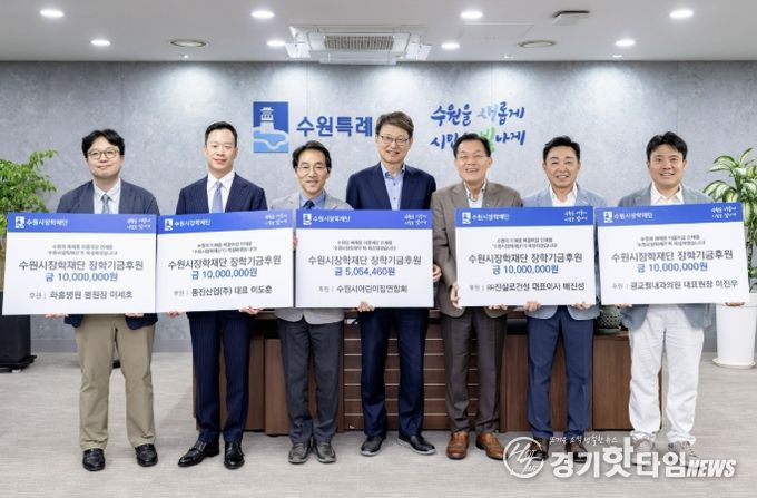 [경기핫타임뉴스=김삼영 기자] 수원시 5개 기업·단체가 “지역인재 양성에 사용해 달라”며 수원시장학재단에 장학기금 총 4500만 원을 기탁했다.