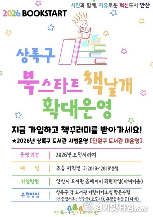 [경기핫타임뉴스=김삼영 기자] 안산시는 상록구 소재 도서관에서 운영 중인 ‘북스타트 사업’ 대상을 기존 영유아에서 초등학교 저학년 학생까지로 확대한다고 30일 밝혔다.