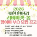 [경기핫타임뉴스=김형철 기자] 포천시농업재단은 오는 5월 한탄강 생태경관단지에서 열리는 ‘2026년 포천 한탄강 리버마켓-봄’ 행사에 참여할 부스 운영자를 공개 모집한다. 이번 리버마켓은 2026년 5월 2일부터 6월 7일까지 37일간 한탄강 생태경관단지 일원에서 개최된다. ‘한탄강 가든페스타’와 연계해 포천 농특산물 홍보와 판매, 다양한 먹거리와 체험 프로그램이 함께 운영될 예정이다. 모집 규모는 총 45개 부스로 △포천 농특산물 판매대 20개 △먹거리 판매대 17개 △푸드트럭 8대다. 농특산물 판매대는 포천시 농업인 및 농식품 기업을 대상으로 모집하며, 먹거리 판매대와 푸드트럭은 식품 영업 허가가 가능한 개인 또는 단체가 참여할 수 있다. 행사 기간에는 농특산물 판매와 함께 △산나물 페스티벌 △시니어 패션쇼 △봄 반려견 관광축제 △홀스타인 품평회 등 다양한 연계 행사가 진행돼 방문객들에게 풍성한 볼거리와 즐길거리를 제공할 예정이다. 참여 신청은 3월 18일 오후 5시까지 전자메일 또는 방문 접수를 통해 가능하며, 선정 결과는 3월 26일 포천시농업재단 누리집을 통해 발표할 예정이다.
