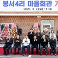 [경기핫타임뉴스=김형철 기자] 파주시 파주읍 봉서4리 마을회관 개관식이 지난 7일 김경일 파주시장, 박정 국회의원을 비롯한 관내 기관장, 사회단체장, 지역 주민 등 100여 명이 참석한 가운데 개최됐다. 이날 행사는 기념사 및 축사, 마을회관 건립을 위해 애써주신 유공자에 대한 표창장 수여, 현판 제막식, 시설 관람 순으로 진행됐다. 파주읍 봉서산로 125번길 12-3에 위치한 봉서4리 마을회관은 대지면적 300㎡, 건축면적 129.78㎡의 지상 2층 규모로, 총사업비 3억 8,800만 원이 투입되어 조성됐다. 경로당과 주방시설 등을 갖춘 이 마을회관은 그동안 마땅한 쉼터가 없었던 봉서4리 주민들에게 편안하게 머물 수 있는 공간을 제공하게 됐다. 황명구 봉서4리 이장은 “마을회관 개관까지 지원을 아끼지 않은 파주시에 감사드리며, 오늘을 기점으로 봉서4리가 더 살기 좋은 마을이 되길 바란다”라고 전했다. 장연희 파주읍장은 “봉서4리 마을회관 신축을 진심으로 축하드린다”라며, “마을회관이 주민들이 서로 소통하고 교류하며 정을 쌓아가는 봉서4리 공동체의 중심이 되길 기대한다”라고 말했다.
