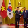 [경기핫타임뉴스=김삼영 기자] 베트남을 국빈 방문한 이재명 대통령은 22일(현지시간) "양국은 2030년까지 교역 규모 1500억 불 목표 달성을 위해 교역·투자 협력을 더욱 호혜적으로 발전시켜 나가기로 했다"고 밝혔다. 이 대통령은 이날 또 럼 베트남 서기장 겸 국가주석과 하노이에 위치한 주석궁에서 정상회담 후 가진 공동언론발표를 통해 이 같이 말했다. 이 대통령은 발표를 통해 "베트남은 대한민국의 3위 교역·투자국이고, 한국은 베트남의 최대 투자국"라며 "약 1만 개의 한국 기업이 석유화학, 조선, 철강, 전자를 아우르는 전 분야에 진출해 높은 수준의 경제 연대를 이루고 있다"고 협력 관계를 강조했다. 또 "한국은 베트남의 '2045년 고소득 선진국 진입' 비전 실현을 위한 최적의 파트너로서, 물류, 교통, 에너지, 인프라와 같은 하드웨어 분야에서부터 과학기술, 지적재산, 창조산업 등 미래 산업 분야까지 전방위적인 협력을 추진하고 있다"고 덧붙였다. 이 대통령은 "이번 정상회담에서 '포괄적 전략 동반자' 협력을 더욱 공고히 하기로 했다"며 회담 주요 성과를 소개했다. 교역