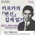 [경기핫타임뉴스=김삼영 기자] 군포시 중앙도서관은 2025년 하반기'중앙도서관 인문숲'명사 초청 특강의 세 번째 무대로 오는 11월 20일 저녁 7시부터 9시까지 중앙도서관 지하 1층 다목적실에서 인천대학교 독어독문학과 목승숙 교수를 초청해 '카프카의 [변신] 깊게 읽기' 특강을 진행한다. 인천대학교 독어독문학과 교수인 목승숙 교수는 한국카프카학회 회장(2023~2024)을 역임한 국내 대표적인 카프카 연구자로 이번 강연에서 카프카의 대표작 [변신]을 20세기 초 유럽의 문화적 콘텍스트 속에서 새롭게 읽어내며, 오늘날의 독자에게도 여전히 유효한 [변신]의 현재적 의미와 울림을 짚어볼 예정이다. 참가자들은 작품 속 인물과 상징, 존재의 불안과 소외의 문제를 통해 인간과 사회, 그리고 ‘나’를 돌아보는 깊은 사유의 시간을 갖게 될 것이다. ‘중앙도서관 인문숲’ 명사 초청 특강은 시민들의 인문학적 소양을 넓히고 문화적 감수성을 높이기 위한 프로그램으로 올 하반기에는 문학·예술·역사 분야 전문가를 초청해 매월 한 차례씩 진행되고 있다. 이번 11월 특강은 군포시민 70명을 대상으로 진행되며 군포시도서관 누리집에서 선착