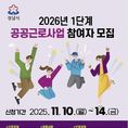 [경기핫타임뉴스=김삼영 기자] 성남시는 오는 11월 10일부터 14일까지 ‘2026년도 1단계 공공근로사업’ 참여 희망자 465명을 모집한다. 참여자는 내년 1월 12일부터 4월 23일까지 약 4개월간 시민농원, 폐기물처리시설, 동 행정복지센터 등 65곳 사업장에서 환경정비 등 공공업무를 수행하게 된다. 19세~64세 근로자는 하루 5시간, 주 5일 근무하며 최저시급 1만320원이 적용돼 1일 5만1600원을 받는다. 65세 이상은 하루 3시간 근무 기준으로 1일 3만960원을 받는다. 모두 하루 5000원의 교통·간식비가 부대경비로 추가 지급되며, 연령에 따라 4대 보험이 의무 가입된다. 참여 자격은 19세 이상의 근로능력자 중 가구원 합산 소득이 기준중위소득 60% 이하이고 재산이 4억원 이하인 성남시민이다. 신청자는 신분증과 증빙서류를 지참해 주소지 동 행정복지센터에 접수하면 된다. 시는 가구소득, 재산, 부양가족 수 등을 종합 고려해 참여자를 선발하고, 12월 30일 시청 홈페이지와 개별 통지를 통해 최종 결과를 발표할 예정이다. 한편, 성남시는 2026년도 공공근로사업에 총 7