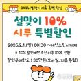 [경기핫타임뉴스=김삼영 기자] 시흥시가 설 명절을 앞두고 지역경제 내수 진작과 골목상권 활성화를 위해 지역화폐 ‘시루’ 10% 특별할인 행사를 진행한다. 명절 특별할인은 다음 달 1일 0시 30분부터 시작되며, 개인별 월 구매 한도는 모바일ㆍ지류권을 통합해 30만 원이다. 특별할인 예산이 소진되면 할인율은 8%로 전환된다. 지류형 시루는 관내 농협, 새마을금고, 신협에서 구매할 수 있으며, 모바일 시루는 ‘지역상품권 착착(Chak)’ 앱에서 충전 후 사용할 수 있다. 시 관계자는 “이번 특별할인을 통해 명절을 앞둔 시민들의 가계 부담을 완화하는 동시에, 경기침체로 어려움을 겪고 있는 지역 소상공인과 골목상권에 실질적인 도움이 될 것으로 기대하고 있다”라고 말했다.