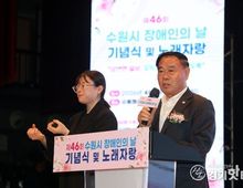 [경기핫타임뉴스=김삼영 기자] 수원특례시의회는 16일 수원청소년문화센터 온누리아트홀에서 열린 '제46회 장애인의 날 기념식 및 복지박람회'에 참석해 장애인과 비장애인이 함께하는 포용사회의 가치를 공유했다. 이번 행사는 법정기념일인 ‘장애인의 날’을 기념해 마련된 것으로, 장애인과 가족, 관련 단체 및 시설 관계자 등 약 500여 명이 함께한 가운데 기념식과 유공자 표창, 축하공연 등으로 진행됐다. 수원특례시의회 의원들도 함께 참석해 자리를 함께하며 행사에 의미를 더했다. 수원특례시의회는 행사에 참석해 유공자 표창을 진행하고, 장애인 복지 증진을 위해 헌신해 온 관계자들의 노고에 감사의 뜻을 전했다. 이재식 의장은 “당연한 일상은 누구에게나 보장되어야 할 권리”라며 “장애가 일상의 장벽이 되지 않도록, 수원특례시의회도 차별 없는 사회를 위한 제도적 기반을 마련해 모두가 평등한 내일을 누릴 수 있도록 함께하겠다”고 밝혔다. 한편, 이날 행사에서는 장애인 인권헌장 낭독과 기념촬영에 이어 다양한 문화행사와 참여 프로그램이 이어지며, 장애에 대한 인식 개선과 공감의 시간을 나눴다.