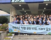 [경기핫타임뉴스=김삼영 기자] 경기도수원교육지원청은 10월 13일, 매월 추진 중인 청렴 캠페인의 일환으로 전 부서가 함께하는 ‘청렴 실천 다짐 쓰레기 줍깅 데이’를 실시했다. 이번 행사는 소속 직원들의 청렴 의식을 높이고 동료 간 협력적 조직 문화 형성과 더불어 시민들에게 청렴의 가치를 확산하여 신뢰받는 수원교육 실현에 기여하고자 마련됐다. 이날 수원교육지원청 직원들은 수원천과 수원화성 용연 일대에서 걸으며 쓰레기를 줍는 ‘줍깅’ 활동을 전개했다. 이와 함께 청렴 콘텐츠가 게시되는 수원교육지원청 공식 소셜미디어(인스타그램, 유튜브)의 QR코드를 새겨 제작한 장바구니를 시민들에게 배부하며 환경 보호의 의미와 청렴 실천 의지를 함께 알렸다. 더불어, 수원교육지원청은 행사와 연계하여‘명절 선물 관련 금품수수 금지’를 주제로 '10월 수원 청렴길잡이 소식지'를 제작했다. 이 소식지는 관내 각급 학교에 배포되어 명절 기간 공직 비위 예방에 힘쓸 수 있도록 안내 자료로 활용될 예정이다. 수원교육지원청 김선경 교육장은 “청렴은 공직자가 반드시 지켜야 할 기본 덕목이자 교육행정의 신뢰를 지탱하는 핵심 가치”이며