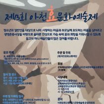 [경기핫타임뉴스=김형철 기자] 재단법인 아천문화교류재단(이사장 성민스님)이 주최, 주관하는 부모사랑 나라사랑 ‘제13회 아천 효문화예술제’가 "요즘 우리에게 가장 필요한 건 '효(孝)'와 '배려'입니다."라는 기치 아래 전통의 가치를 글과 그림으로 표현할 주인공을 찾습니다! 제13회를 맞이한 아천 효문화예술제가 한층 더 깊어진 모습으로 찾아옵니다! 이번 예술제는 우리 사회의 소중한 가치인 '효'를 예술로 꽃피우는 소통의 장이 될 것으로 기대가 되며, 이번 예술제는 문화체육관광부와 (사)한국문화예술교류협회 등의 후원을 받아 문학과 미술 두 부문으로 나뉘어 진행되고, 종합대상에는 국회의장상, 학생부 종합대상은 교육부 장관상이 수여되며, 특별상에는 미술부문 문화체육관광부장관상이 또한 대상, 최우수상, 우수상에는 시도지사상과 시도교육감상 등이 수여된다. 아천문화교류재단 이사장 성민 스님은 "최근 우리 사회는 극심한 입시 경쟁과 세대 간의 갈등으로 인해, 우리가 반드시 지켜야 할 전통 가치인 ‘효(孝) 사상’이 점차 설 자리를 잃어가고 있어 매우 안타깝다"며 우려를 표했습니다. 이어 스님은 "이번 예술제가 단순히 실력을 겨루는 장을