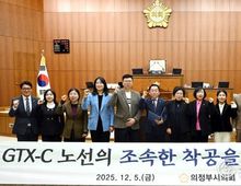 [경기핫타임뉴스=김형철 기자] 의정부시의회는 5일 수도권 북부의 오랜 숙원인 GTX-C 노선의 조속한 착공을 촉구하는 성명서를 발표했다. GTX-C 노선은 양주시 덕정역에서 수원역까지 연결되는 국가철도망으로 교통 불편 해소와 지역 균형발전을 위해 반드시 추진되어야 할 국가 핵심사업이다. 지난해 1월, 의정부시청 다목적체육관에서 GTX-C 노선 착공 기념식을 개최했으나 사업 추진 과정에서 정부가 민간사업자와의 공사비 조정 문제 등 핵심 현안을 해결하지 못해 사업이 지연되면서 지역 발전의 추진 동력 또한 오랜 기간 제자리걸음을 하고 있다. 이날 시의원들은(김연균, 권안나, 김현채, 정미영, 김태은, 김현주, 최정희, 이계옥, 강선영, 정진호, 김지호, 조세일 의원) 47만 의정부 시민을 대표하여, GTX-C 사업의 지연으로 수도권 교통 불균형이 지속되고 시민의 이동권 개선이 지체되고 있는 현 상황에 깊은 유감을 표하며, GTX-C의 신속한 착공이 국가가 반드시 이행해야 할 책임임을 천명했다. 김연균 의장은 “정부와 관계기관이 약속한 바를 책임 있게 이행할 것을 강력히 촉구하며”, “앞으로도 GTX-C