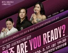 [경기핫타임뉴스=김삼영 기자] 광주시문화재단은 오는 17일 ‘제72회 경기도체육대회 및 제16회 경기도장애인체육대회 2026 광주’의 성공 개최를 기원하고 대회 개막 30일 전을 기념하는 ‘광주 ARE YOU READY?’ 공연을 개최한다고 6일 밝혔다. 공연은 3월 17일 오후 7시 30분 광주시문화예술의전당 남한산성홀에서 열리며 전석 무료로 진행된다. 관람을 희망하는 시민은 광주시문화재단 홈페이지 축제·행사 안내의 ‘광주 ARE YOU READY?’ 공연 페이지 또는 예매 바로가기 링크를 통해 사전 예약 후 관람할 수 있다. 공연은 지정석으로 운영되며 공연 당일 선착순으로 좌석이 배정된다. 이번 공연은 ‘제72회 경기도체육대회 및 제16회 경기도장애인체육대회 2026 광주’의 성공 개최를 응원하고 대회 개막을 한 달 앞둔 시점을 기념하기 위해 마련됐다. 공연은 약 90분간 진행되며 국악, 대중가요, 드럼 연주, 비보잉 등 다양한 분야의 공연이 어우러져 시민들이 함께 응원의 에너지를 나누는 문화행사로 구성된다. 또한, 광주시 홍보대사들이 출연해 대회의 성공 개최를 향한 시민들의 참여와 관심을 높일 예정이다.