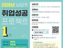 [경기핫타임뉴스=김형철 기자] 남양주시는 오는 26일부터 청년 구직자의 취업 경잭력 강화를 위해 ‘2026 취업성공 프로젝트 1기’참여자를 모집한다고 밝혔다. ‘취업성공 프로젝트’는 채용 환경 변화에 대응한 실전 중심 교육과 1:1 맞춤 컨설팅을 통해 청년들의 취업 준비 완성도를 높이는 데 중점을 둔다. 이번 프로젝트는 3월, 5월, 7월, 9월 총 4기에 걸쳐 운영한다. 세부 내용은 △경험 정리 △입사지원서 작성법 및 컨설팅 △면접 전략 특강 △1분 자기소개 실습 및 모의면접 컨설팅 등 취업에 실질적으로 필요한 내용으로 구성됐다. 교육 수료자에게는 참여수당 10만 원을 남양주사랑상푼권으로 지급하고, 취업 시 취업성공수당 10만 원을 추가 지원해 구직 활동에 대한 동기 부여를 강화할 예정이다. 모집 기간은 2월 26일부터 3월 9일까지다. 모집 대상은 남양주시에 주민등록을 둔 19~39세 청년 구직자이며, 총 15명을 선정한다. 참여를 원하는 청년은 ‘잡아바 어플라이’시스템을 통해 신청하면 된다.