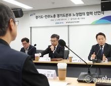 [경기핫타임뉴스=김삼영 기자] 경기도와 민주노총 경기도본부가 5일 경기도청에서 노정 간 신뢰를 바탕으로 한 협력 선언을 했다. 이날 행사에는 고영인 경기도 경제부지사를 비롯해 김도형 경기도 노동국장, 김진희 민주노총 경기도본부장 등이 참석했다. 양측은 지난 1월 노정협의 상견례를 통해 첫 공식 만남을 가진 바 있다. 이번 협력 선언을 통해 경기도와 민노총 경기도본부는 ▲공공부문 노동권 보장 및 확대 ▲노동가치를 우선으로 한 행정 구현 ▲연 2회(상․하반기) 경기도-민노총 경기도본부 간 정례회의 추진 ▲경기도 정책의 공공성 강화 및 폭넓은 대화 창구 구축을 약속했다. 경기도는 노정협의 요구안의 정책 반영 논의를 위해 3월 중 관계부서 실무회의를 열 계획이다. 고영인 경제부지사는 “노동 존중 사회로 나아가는 실질적인 변화를 위해 경기도와 민노총이 협조 체계를 구축하고 지속적인 소통과 협력을 이어나갈 것”이라고 말했다.