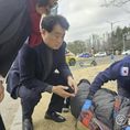 [경기핫타임뉴스=김삼영 기자] 하은호 군포시장이 길에 쓰러진 할머니를 발견하고 신속한 신고와 응급처치를 통해 무사귀환을 도와 화제다 하은호 시장은 27일 오전 10시경 관내 출장길에 산본중앙공원 사거리 KT옆 공원에 쓰러진 할머니를 발견했다. 하 시장 일행은 즉시 차에서 내려 119 신고를 하고 할머니를 편안한 자세로 높혀 상태를 살피며 의식을 잃지 않도록 간호했다. 즉시 출동한 119구조대는 할머니의 의식을 잃지 않도록 주의하며 응급조치를 했고 상태가 호전되어 구급차를 타고 귀가한 것으로 알려졌다. 하은호 시장은 유난히 재난 구조 현장과 가깝다. 고교생이었을 때 안양 일대에 대홍수가 났을 때 대림대학교 앞에서 버스 안으로 물이 차오르는 현장에서 사람들을 구조한 적이 있다. 지난 2022년에는 산본역 피트인 사거리에서 횡단보도 옆에 쓰러진 노인을 발견하고 이번처럼 신속하게 신고와 구조를 통해 무사귀환을 도왔다. 하은호 군포시장은 “해빙기 사고 예방을 위해 직원들과 회의를 마치고 나서는 길이었다”며 “봄이 오는 길목에서 어르신들의 각별한 주의가 필요하다”고 말했다.
