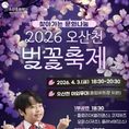 [경기핫타임뉴스=김삼영 기자] 오산문화재단은 오는 4월 3일 오후 6시 30분 오산천 야외무대(종합운동장 뒤편)에서 시민들과 함께하는 봄맞이 ‘2026 오산천 벚꽃 축제’를 개최한다. 이번 행사는 따뜻한 봄의 시작을 알리며 시민들에게 특별한 추억을 선사하기 위해 마련된 것으로, 가수 황민호의 축하 공연을 비롯해 점등식과 폭죽 퍼포먼스가 어우러져 오산천 일대를 화려한 봄밤의 분위기로 물들일 예정이다. 행사 당일에는 음악과 빛, 불꽃이 조화를 이루는 다양한 프로그램이 진행되며, 남녀노소 누구나 함께 즐길 수 있는 열린 문화행사로 시민들의 큰 호응이 기대된다. 오산문화재단 관계자는 “오산천에서 펼쳐지는 이번 축제가 시민들에게 특별한 봄밤의 추억으로 남길 바란다”며 “앞으로도 시민들이 일상 가까이에서 문화와 예술을 향유할 수 있도록 다양한 프로그램을 지속적으로 마련하겠다”고 밝혔다.