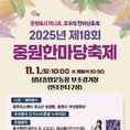 [경기핫타임뉴스=김삼영 기자] ‘제18회 중원한마당축제’가 오는 11월 1일 오전 10시부터 오후 2시 30분까지 2000여 명이 참석한 가운데 성남종합운동장 보조경기장에서 열린다. 성남시 중원구가 후원하고, 중원한마당축제 추진위원회가 주최·주관해 열리는 이번 행사는 ‘중원에서 하나로, 모두의 한마당 축제’를 주제로 진행된다. 이날 특설무대에선 11개 동 주민 대표가 출연해 넘치는 끼와 노래 실력을 선보이는 ‘우리 동네 인기스타’ 공연이 펼쳐진다. 초청 가수 윤수현의 ‘천태만상’ 등 트로트 공연, 신인 아이돌 걸그룹 아스텔의 ‘슈퍼노바’, ‘아일랜드’ 등의 공연, 중원유스센터 청소년 보컬 동아리와 댄스 동아리 공연도 열려 축제 분위기를 달군다. 시민 체험 행사도 다양하다. 행사장 곳곳에 총 11개 체험 부스를 설치해 4차산업과 관련한 드론 축구, 가상현실(VR) 트럭 체험, 배틀 로봇 등과 페이스페인팅, 목공 체험 등을 해볼 수 있다. 중원구 관계자는 “주민 간 화합을 도모하고, 신나고 활기찬 지역 분위기를 조성하는 장이 될 것”이라고 말했다.