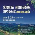[경기핫타임뉴스=김형철 기자] 파주시는 오는 25일 13시부터 16시까지 파주장단콩웰빙마루(탄현면 필승로 396) 2층에서 ‘한반도 평화공존, 파주 디엠지(DMZ) 생태·평화 세미나’를 개최한다. 이번 토론회(세미나)는 정부 국정과제로 제시된 ‘국제 생태·평화·관광 협력지구 개발, 평화경제특구 조성’과 ‘한반도 생물다양성 회복’정책에 선제적으로 대응하고, 파주 디엠지(DMZ)의 평화적 이용과 체계적 보전 방안을 모색하기 위해 마련됐다. 행사에는 강금실 외교부 글로벌기후환경대사, 김경일 파주시장, 박정 국회의원, 박대성 파주시의회 의장을 비롯해 생태·환경·평화 분야 전문가, 시민 등 150여 명이 참석할 예정이다. 1부 개회식에 이은 2부 발표회에서는 ▲강민조 국토연구원 한반도·동아시아연구센터장의 ‘디엠지(DMZ)의 보전 및 평화적 이용방안’▲서형수 국립생태원 생태조사연구실 전임연구원의 ‘생물다양성 보전을 위한 디엠지(DMZ) 일원의 생태적 중요성과 보전 방향’▲조성택 경기연구원 경기북부특별자치도연구센터장의 ‘경기북부 접경지역의 발전방향’을 주제로 발표가 진행된다. 3부 전문가 토론에서는 이상준 한미