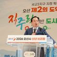 [경기핫타임뉴스=김삼영 기자] 오산시가 7일, 세교3신도시 지구지정을 계기로 한 향후 시정 운영 방향과 인구 50만 경제자족도시로 도약하기 위한 중장기 도시 비전을 제시했다. 이권재 오산시장은 이번 발표에서 세교3신도시를 주거 공급에 그치지 않고, 도시 기능과 성장 방향을 함께 고려해 추진하겠다는 구상을 밝혔다. 세교3신도시는 총 131만 평 규모로 3만3천 호의 주택 공급이 예정돼 있으며, 인구 50만 시대를 대비해 단계적으로 조성될 계획이다. 현재 세교3신도시에 반영된 경제자족용지는 9만3천 평 규모로, 오산시는 관계기관과의 협의를 통해 경제자족용지 확대를 추진할 방침이다. 아울러 첨단 테크노밸리와 게임 콘텐츠 산업 클러스터 조성을 통해 AI·반도체·게임 산업이 결합된 경기 남부권 산업 거점 도시로의 성장을 도모한다는 계획이다. 이 시장은 이와 관련해 “세교3신도시는 주거를 늘리는 사업이 아니라, 오산의 미래를 설계하는 사업”이라며 “기업이 오고, 일자리가 생기고, 시민의 삶으로 이어지는 구조를 만드는 것이 목표”라고 말했다. 교통 인프라 구축도 세교3신도시 추진의 주요 과제로 제시됐다. 오산시