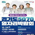 [경기핫타임뉴스=김삼영 기자] 경기도와 경기도일자리재단은 오는 10월 24일, 구봉산 다목적체육관에서 중장년층을 위한 『2025 경기도 5070 일자리박람회 in 화성+오산』를 개최한다고 밝혔다. 이번 박람회는 경기도가 주관하는 시군 순회형 일자리 박람회 ‘경기 5070 그레잇잡투어(Gray it-job tour)’의 일환으로 마련됐다. ‘그레잇잡투어’는 중장년층을 상징하는 ‘그레이(Gray)’, 주목받는다는 의미의 ‘잇(It)’, 일자리를 찾아가는 ‘잡 투어(Job Tour)’의 의미를 담은 합성어로, 50~70대 중장년층이 자신만의 경력을 살려 새로운 인생 2막을 설계할 수 있도록 지원하는 여정을 의미한다. 이번 박람회에는 25개의 지역 우수 기업이 직접 참여해 현장 채용 부스를 운영하며, 중장년 구직자들과 일대일 면접을 진행한다. 아울러 현장 참여가 어려운 30여 개 기업은 채용게시대를 통해 공고를 게시하고 구직자가 제출한 이력서를 대신 접수해 기업에 전달하는 방식으로 참여함으로써, 총 60여 개 기업이 채용에 나서는 효과를 거둘 전망이다. 이 외에도 오산시일자리센터, 화성시일자리센터 등 지역
