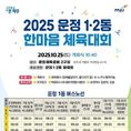 [경기핫타임뉴스=김형철 기자] 운정1·2동 체육회는 오는 25일 운정체육공원(가람로 150번길 41-33)에서 ‘2025 운정1·2동 한마음 체육대회’를 개최한다고 밝혔다. 이번 2025 운정1·2동 한마음 체육대회는 작년에 이어 두 동이 함께 개최하면서 운정 1·2동 주민들의 건강증진과 화합을 이루는 데 중점을 뒀다. 행사는 오전 10시 40분 개회식을 시작으로, ▲어린이 장애물 달리기 ▲신발 양궁 등 온 가족이 즐길 수 있는 다양한 체육 프로그램이 진행될 예정이다. 또한 ▲고고장구 ▲태권도 시범단 ▲거리 공연 ▲파주시 홍보대사 김설·김성대의 축하공연이 더해져 풍성한 볼거리를 제공한다. 지역사회에서 후원한 다양한 경품도 준비되어 있으며, 참가자들의 편의를 위해 주요 아파트 단지 앞에서 승차할 수 있는 순환 버스를 운영할 계획이다. 이대영 운정2동 체육회장은 “같은 생활권을 가진 운정1동과 운정2동 주민들이 한자리에 모여 여유를 즐기고 화합할 수 있는 장이 될 수 있도록 열심히 준비했다”라며 “행사가 성공적으로 운영될 수 있도록 주민들의 많은 참여를 부탁드린다”라고 전했다.