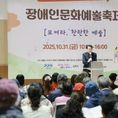 [경기핫타임뉴스=김삼영 기자] 군포시는 군포시장애인종합복지관 주관으로 10월 31일 장애인센터 내 다목적실에서 2025년 장애인문화예술축제를 개최했다. 이번 축제는 2025년 경기도 장애인 문화예술진흥사업으로 선정되어 경기도와 군포시의 지원으로 장애인과 비장애인이 함께 어우러져 창의적이고 감동적인 공연과 전시가 펼쳐졌다. 하은호 시장과 시낭송동아리 ‘수리담시’회원의 시낭송 공연으로 시작한 행사는 발달장애인으로 이루어진 어울림합창단의 합창공연과 한세대학교 음악학과 학생들의 관현악 공연 등으로 이어졌다. 다채로운 공연과 함께 도예토, 퀼트, 사군자, 미술, 사진 등의 전시는 예술의 무한한 감동을 시민과 함께 나누는 뜻깊은 시간이 됐다. 특히 누구나 함께 즐길 수 있는 캘리그라피와 가죽공예 체험프로그램도 마련되어 예술의 장벽을 낮추고 참여의 폭을 넓혔다. 하은호 군포시장은 “시민 모두가 함께하는 문화예술의 장을 확장하는 계기가 되길 바란다”라며 “앞으로도 장애인 문화예술 지원에 최선을 다해 포용과 화합의 도시를 만들어가겠다”고 말했다.