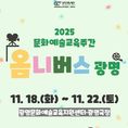 [경기핫타임뉴스=김삼영 기자] (재)광명문화재단은 오는 11월 18일부터 22일까지 광명문화예술교육지원센터·광명극장에서 2025 문화예술교육주간‘옴니버스 광명’을 개최한다. ‘옴니버스(Omnibus)’는 라틴어로 ‘모두를 위한’을 뜻하며, 여러 독립된 이야기를 하나의 주제로 엮는 형식을 의미한다. 이번 주간은 이러한 옴니버스 형식으로 다양한 문화예술교육 프로그램이 하나의 메시지 아래 연결되도록 기획됐다. 이번 행사는 ‘모두를 위한 문화예술교육’을 주제로 ▲대담회 '거장들의 대화: 청소년을 위한 특별한 예술 수업' ▲접근성 체험 프로그램 '경계 없는 교실(Beyond Limits)' ▲경기 지역중심 문화예술교육 지원사업 성과 공유회 '끝과 시작' ▲생활악기오케스트라 제7회 정기연주회 'Fuoco(불꽃)'까지 총 네 개의 프로그램을 통해 누구나 참여할 수 있는 포용적 문화예술교육주간을 구현하고자 한다. 18일 19시에 광명극장에서 2025년 문화예술교육주간 첫 시작으로 지난 9월 진행된 ‘페르테 예술학교’와 연계된 '거장들의 대화: 청소년을 위한 특별한 예술 수업'대담회가 열린다. 고희경 교수(홍익대 공연예술대학원